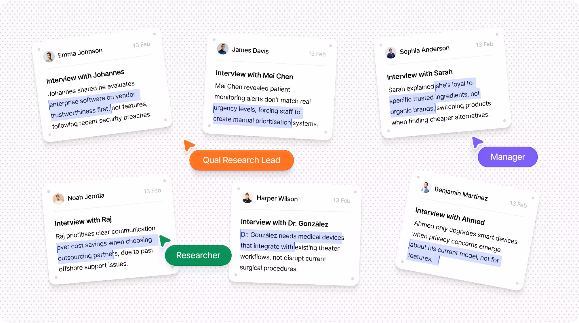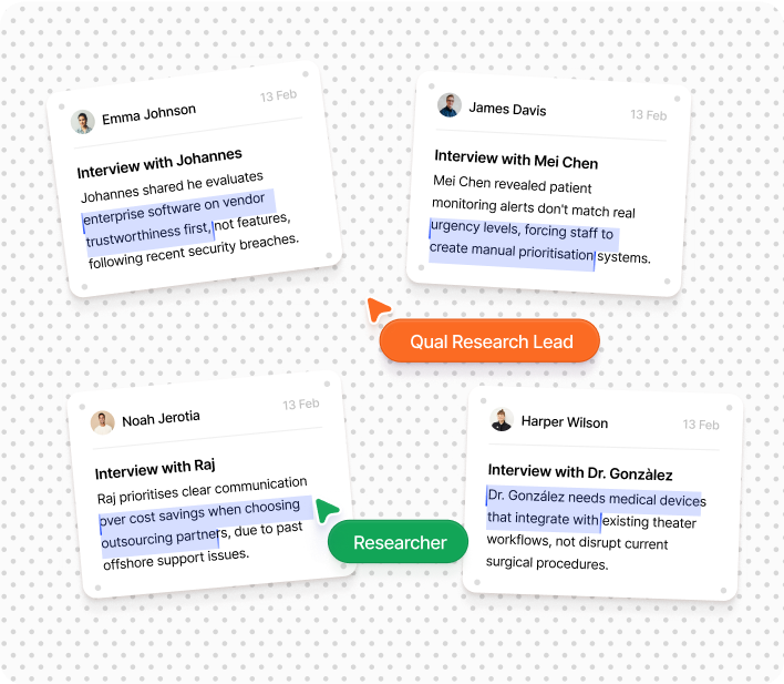 Filter by language, expertise, price and availability to find your perfect match in minutes. Every moderator brings proven experience in conducting interviews, uncovering key insights and delivering professional reports.